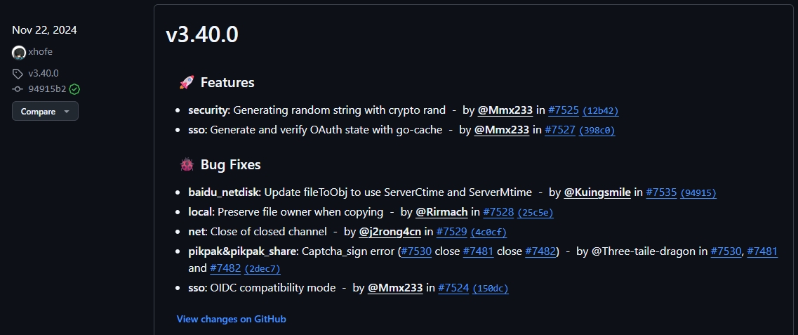 为确保绝对安全,建议将 AList 回退到出售前最后的安全版本 v3.40.0。这个版本发布于 2024 年 12 月 7 日(Commit #492b49d),被广泛认为是最稳定的最终开源版本。