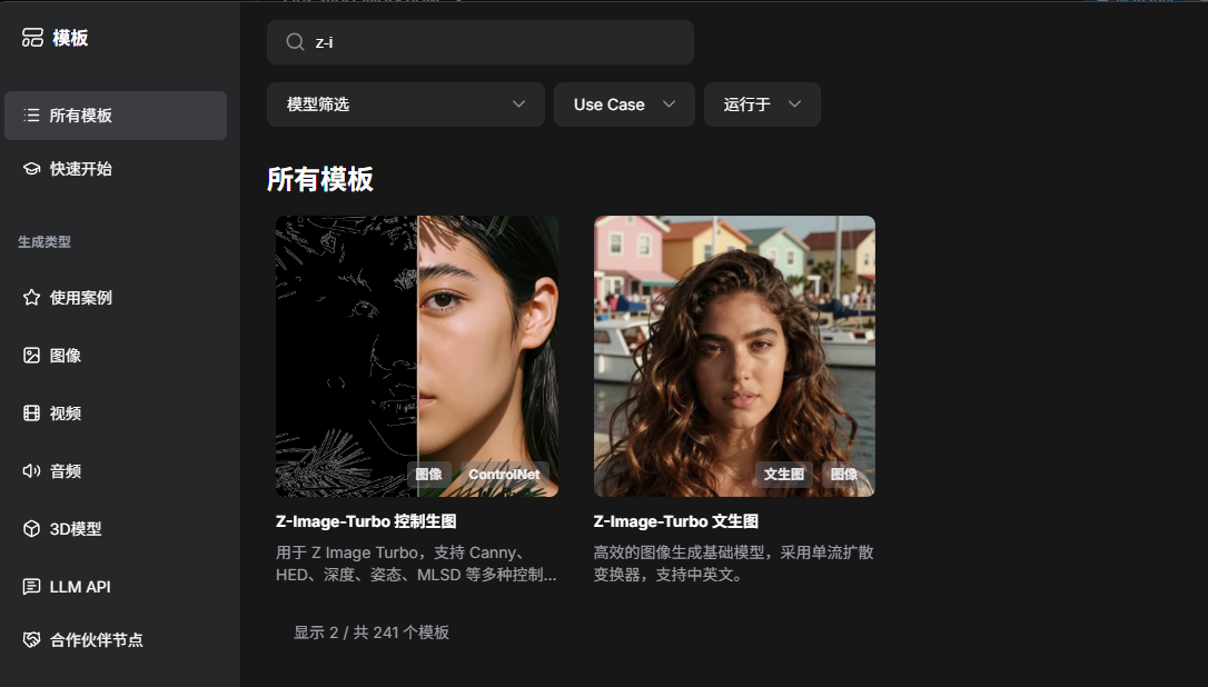 在模型库中也分别提供了 控制生图 和 文生图 两种模板
