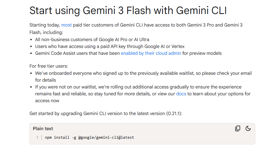 看说的是 Gemini CLI 也更新了 Gemini 3 Flash
