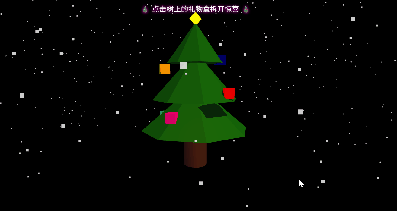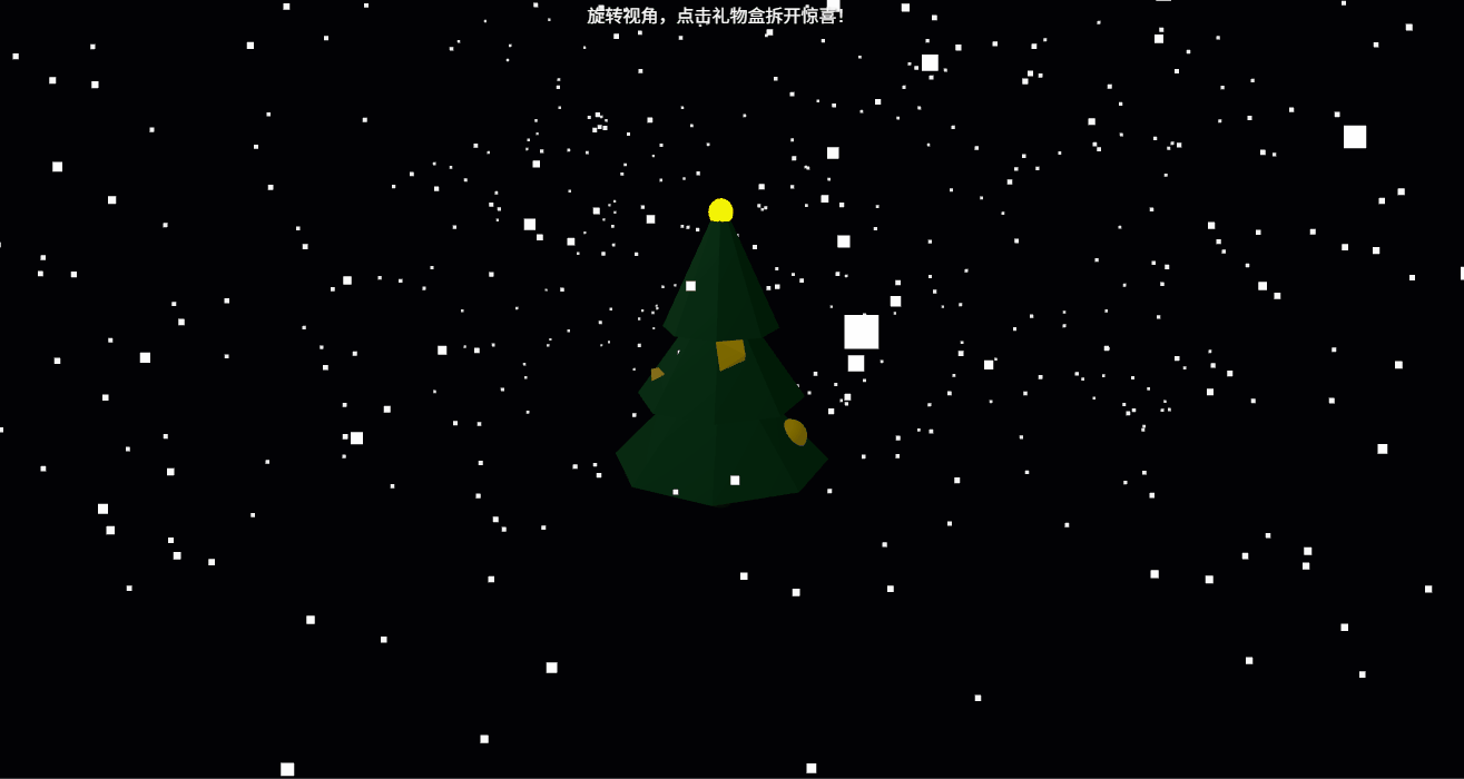 用 Gemini 3 Pro 也试一下效果,树是自己动的,视觉不能移动,拆礼物是有了,但是也有点太丑了哈,估计提示词给的太简单了