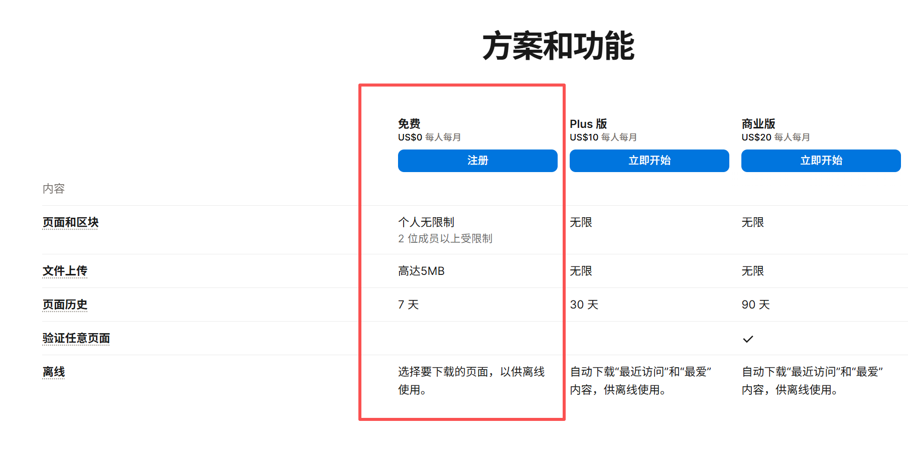 看看各个笔记平台对于免费版的差异,这也是我比较关心的核心问题,毕竟能白嫖的肯定不去付费。