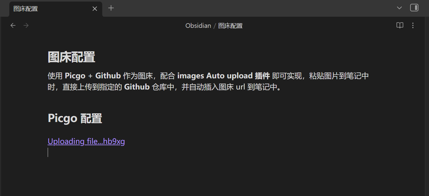 接下来在笔记中测试一下整体的流程,先创建一篇笔记,然后通过复制粘贴的方式,将刚才的一张 Picgo 配置图片粘贴进去。