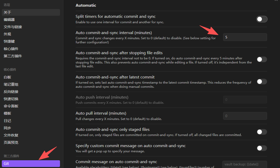 在插件配置页面中,也可以设置一个自动同步的时间,例如设置为5分钟