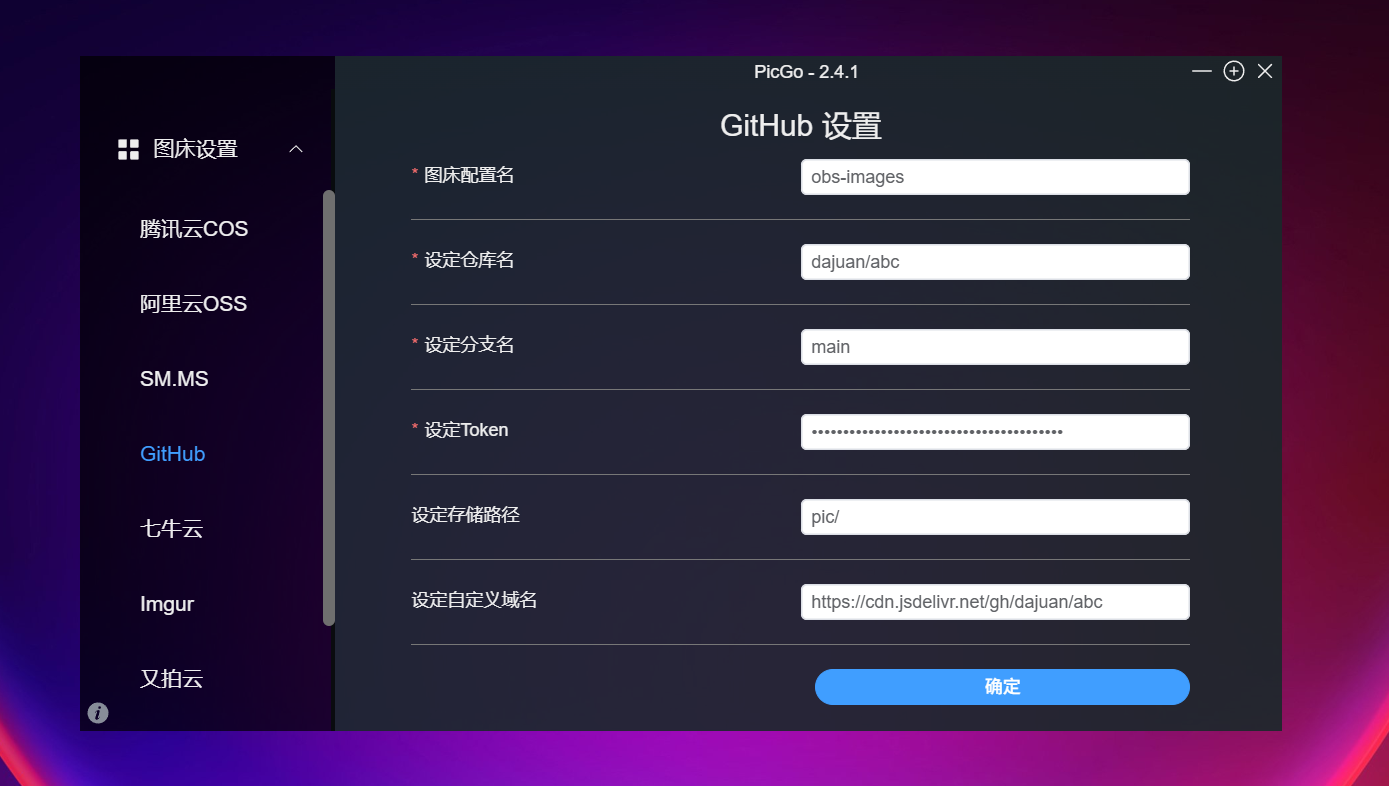 下载安装后,我们要进行一下图床的配置,我这边使用的 github 仓库
