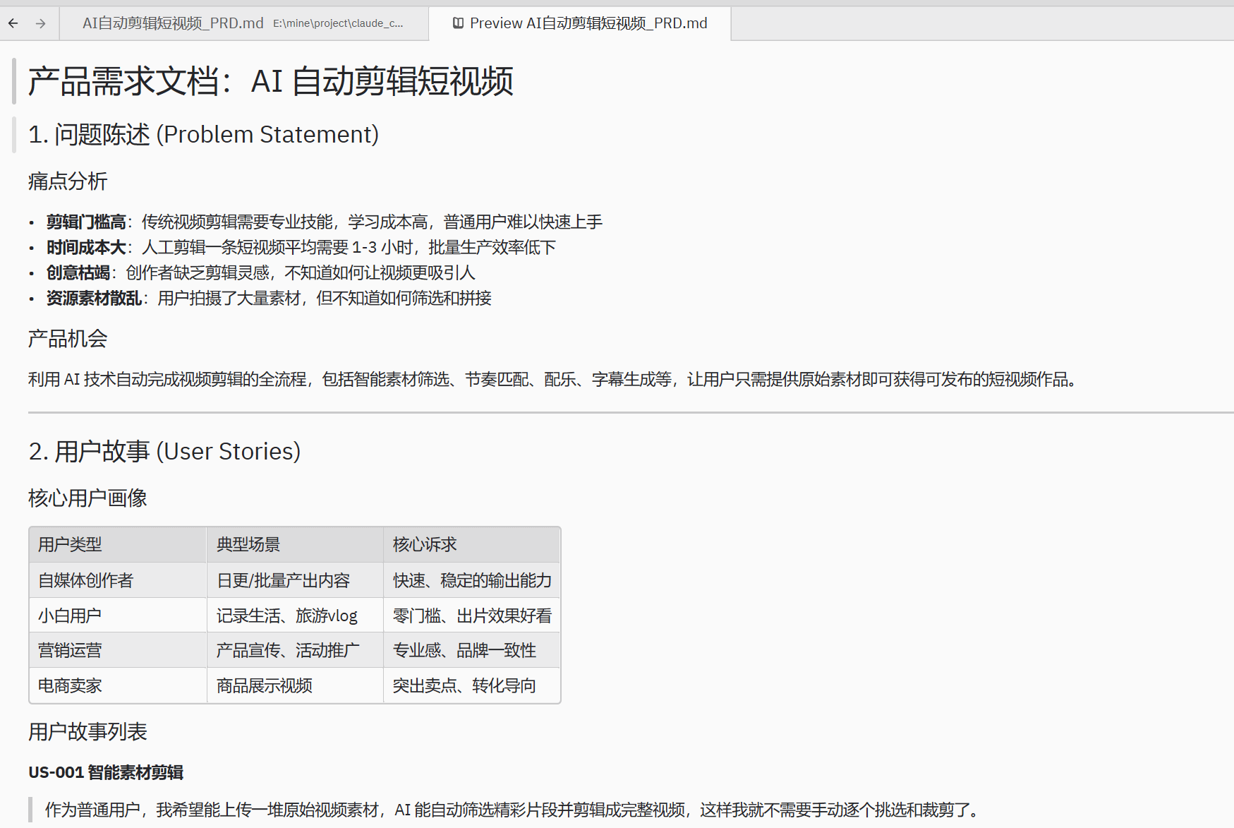 最终就会展示出这份 PRD 文档内容