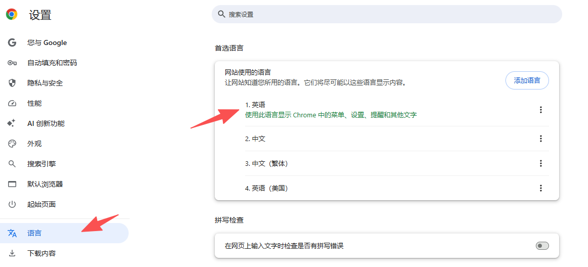 - 调整 Google 账号语言设置成英文