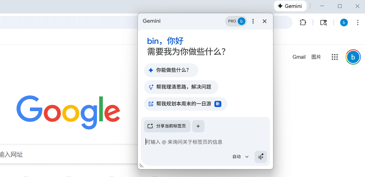 这时候重新打开浏览器,如果右上角看到一个 Gemini 标识,那就代表开启成功了